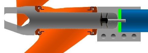 - Următorul pas este să introduceți șurubul de compresie astfel încât filetul să fie orientat spre volan.