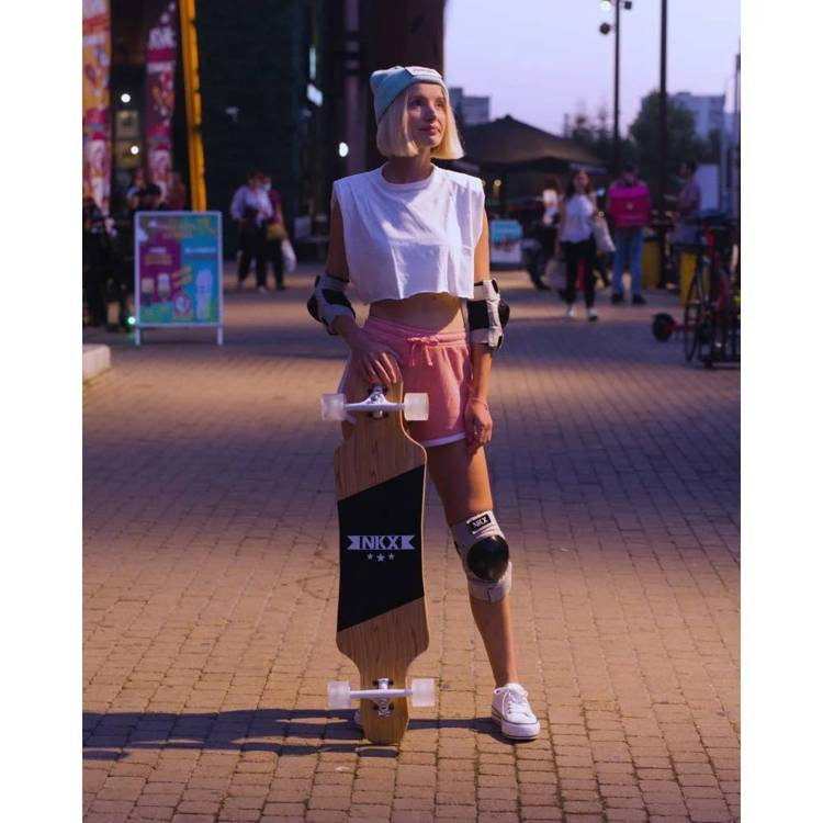 NKX Fearless este o configurație all-round pentru longboard. Puntea este fabricată din arțar canadian, un lemn cu rezistență și flexibilitate foarte ridicate. Blatul mesei are 7 straturi din acest lemn, care au fost lipite între ele prin laminare termică, astfel încât are un flex foarte bun. Forma simetrică a vârfului twin cu decupaje mari elimină frecarea roților pe masă în timpul virajelor dificile și vă permite să călătoriți în ambele direcții. Dispune de camioane NKX Flow Deluxe de foarte bună calitate, cu lățimea de 180 mm, care sunt montate într-un sistem drop thru - astfel încât partea superioară este mai aproape de sol. Toate acestea vor face mai ușor de controlat placa - împingerea de pe ea nu este, de asemenea, nici o problemă la toate!