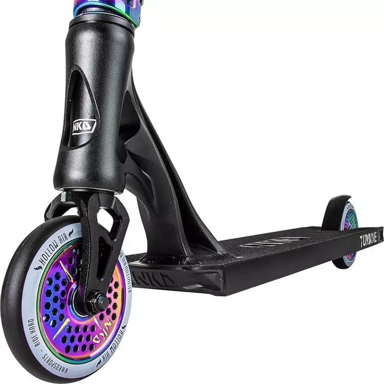 • NKD Turbine este unul dintre cele mai nebunești modele de scutere de performanță de la NKD! Dacă vă plac cascadoriile și rotirile grațioase, scuterul NKD Turbine este alegerea evidentă pentru dvs., indiferent dacă preferați skatepark-ul sau stilul strada