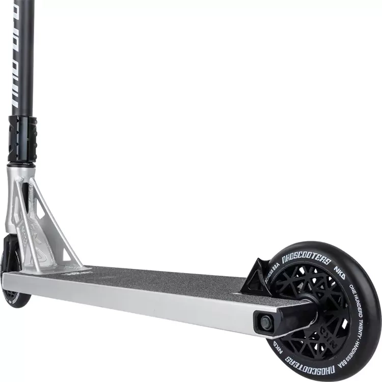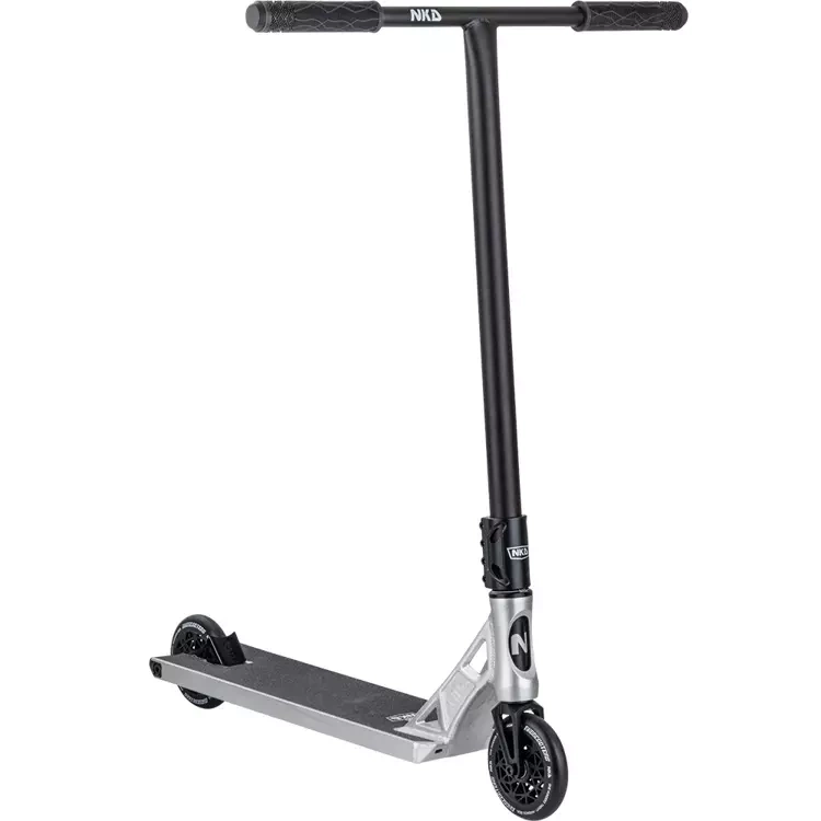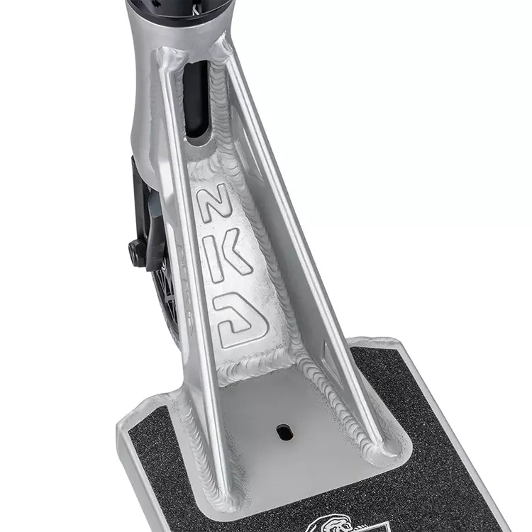 NKD UFO Performance Street Scooter este un scuter ideal pentru piloții intermediari și mai avansați. Pe modelul UFO, platforma este fabricată din aluminiu, în timp ce ghidonul este fabricat din oțel cromat - datorită utilizării acestor materiale, scuterul este atât foarte puternic, cât și extrem de ușor (cântărește doar 4260g). Datorită greutății reduse, putem efectua cu siguranță trucuri mai ușor în timpul zborului, fără a simți inerția ridicată a unui scuter greu. Modelul are, de asemenea, o manevrabilitate și o senzație excepțional de bune pentru trucurile în stil stradal, dar va funcționa bine și în skatepark-ul obișnuit!