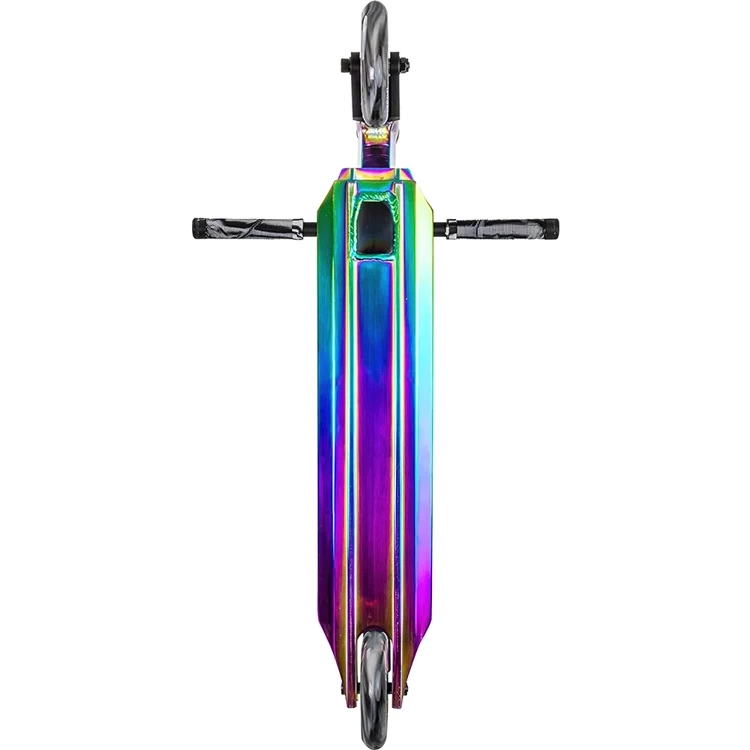 Scuterul de performanță Story High Roller combină tot ce ar trebui să aibă un model de skateboarding. Vorbim despre greutate redusă combinată cu rezistență foarte mare - sistemul se bazează pe o platformă ușoară din aluminiu cu două ghidaje pentru alunecări mai ușoare. Dar asta nu e tot, pentru că vine cu o furcă forjată mega robustă într-o formă triunghiulară distinctivă, care poate rezista aterizărilor foarte dure. Și nu uitați de roțile puțin mai mari, de 110 mm, care prezintă un model elegant al miezului cu raze.