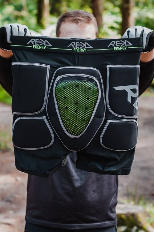 Pantalonii scurți de la Rekd sunt echipați cu 4 tipuri de suprafețe de protecție amplasate simetric. Acestea includ protectoare pentru fese, protectoare pentru coapsele din față, protectoare pentru mușchii piciorului biceps din spate și o protectoare pentru coadă care este interschimbabilă. Designul pantalonilor scurți împiedică picioarele să se ridice singure în timpul călătoriei, ceea ce menține protectorii la locul lor. Energy Impact de la REKD este o opțiune de protecție versatilă care este potrivită pentru utilizare în toate sporturile dinamice, datorită designului său ergonomic.