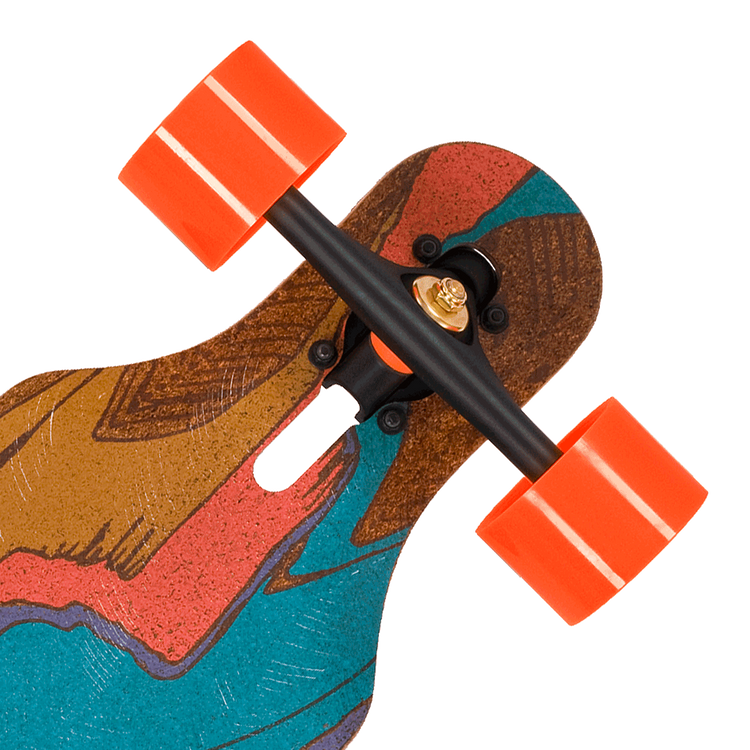 Profilul curbat și concavitatea variabilă vă vor oferi o experiență de condus dinamică și precisă. Decupajele, combinate cu spațiile lărgite pentru roți, maximizează garda la sol pentru roțile mari și permit viraje adânci și curbe strânse. Loviturile minime ale nasului și cozii facilitează navigarea pe străzile orașului și deschid oportunități pentru trucuri freestyle.