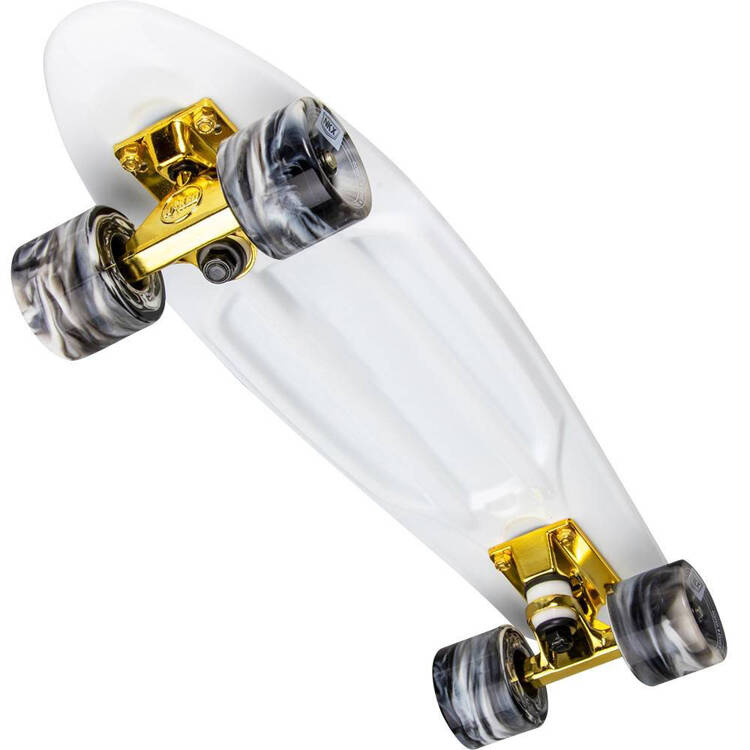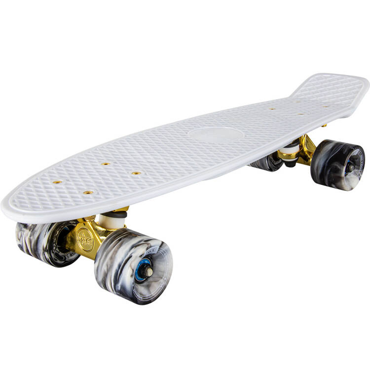 Rulmenții roților de 22" sunt din clasa ABEC11, astfel încât garantează o rulare uniformă și o creștere ușoară a impulsului. Roțile late și moi din poliuretan amortizează vibrațiile pentru o călătorie confortabilă. Puntea fiskingului este fabricată din polipropilenă rezistentă, suportând greutatea călărețului de până la 100 kg. În plus, platforma a fost acoperită cu o gravură în carouri, care înlocuiește griptape-ul clasic de skateboard și reduce semnificativ șansele de alunecare a picioarelor pe placă.