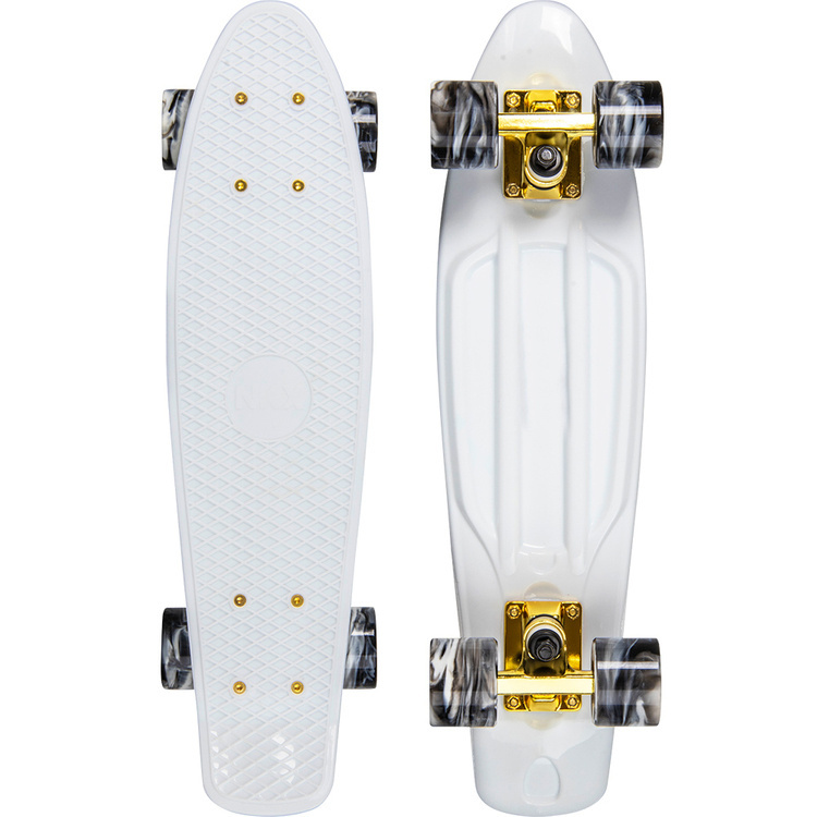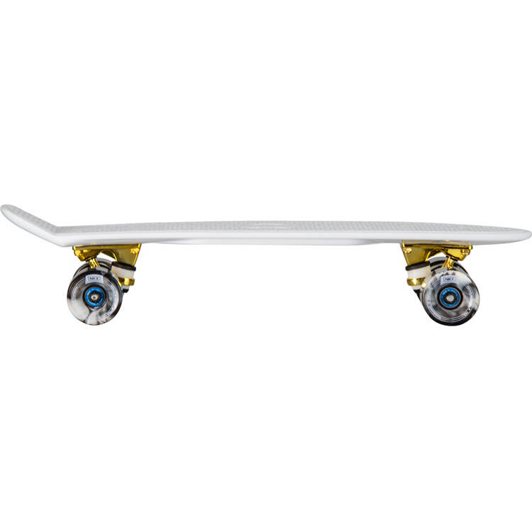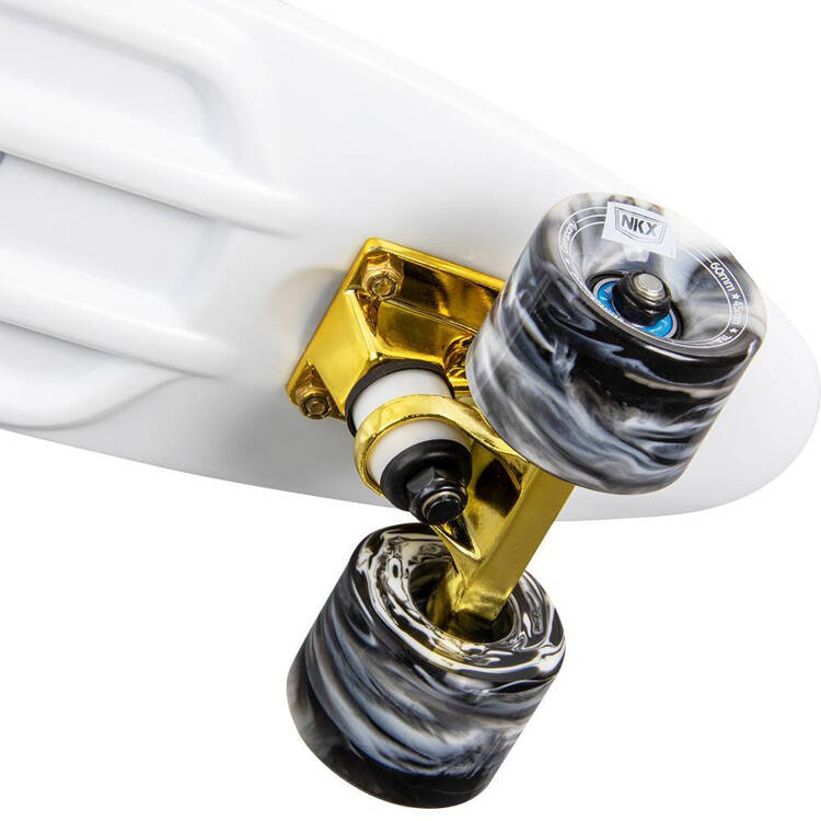 Fiszka este un reprezentant solid al genului său de plăci pentru plimbări zilnice sau deplasări urbane într-o versiune miniaturizată. Adesea, mărcile care produc ochiuri de pește se bazează pe un design care a fost testat timp de ani de zile, fără a adăuga un conținut distinctiv modelelor lor. NKX nu este una dintre aceste mărci. modelul 22" este disponibil în patru scheme de vopsire diferite, atrăgătoare. Alege vopseaua preferată dintre elegantele "Black", "Black-Gold", "Metallic-SIlver" și senina "Glow-Blue" și pornește să cucerești orașul cu stil cu un 22" de la NKX!