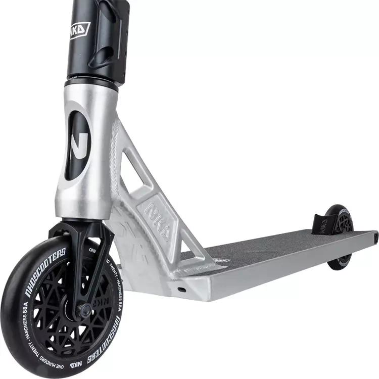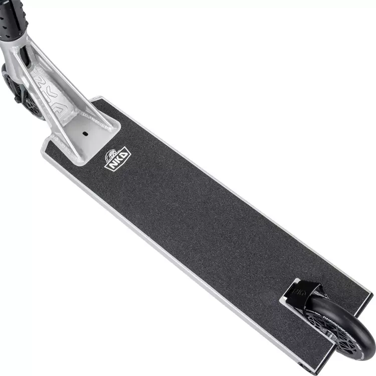 Modelul NKD UFO este fabricat folosind materiale de cea mai înaltă calitate, făcând scuterul în același timp foarte durabil și extrem de ușor. Cântărește doar 4260 grame! Datorită greutății reduse, puteți efectua cu siguranță trucuri în zbor mai ușor, fără a simți inerția ridicată a unui scuter greu. Acest model este caracterizat de manevrabilitatea și senzația sa excepțională pentru trucuri pe stradă, dar va funcționa bine și în skatepark-ul obișnuit.