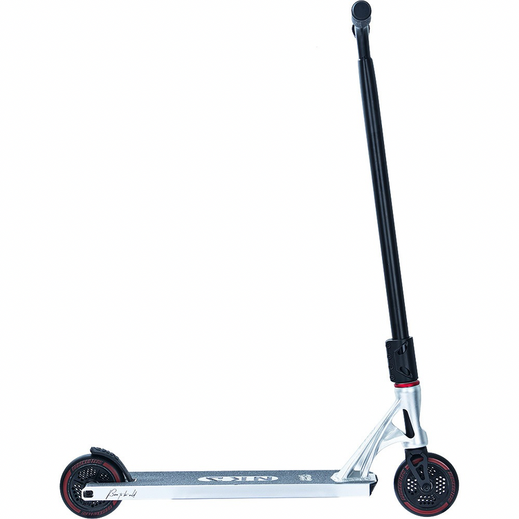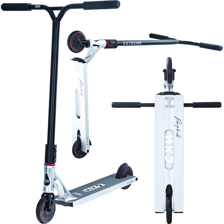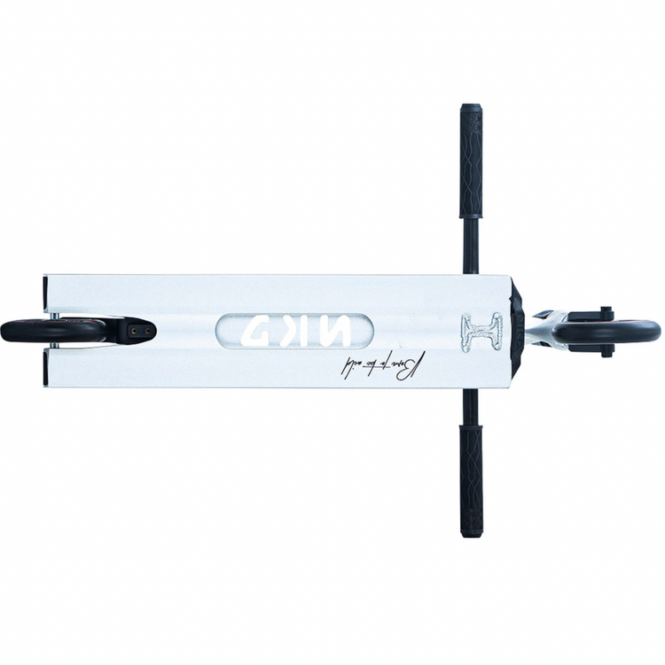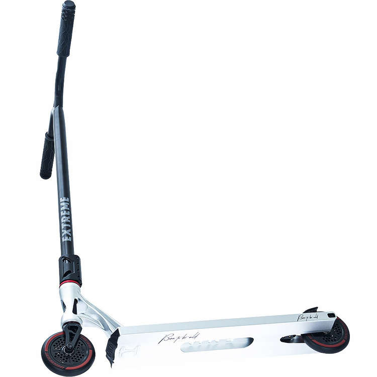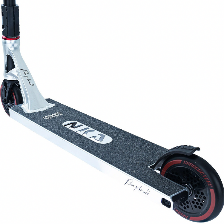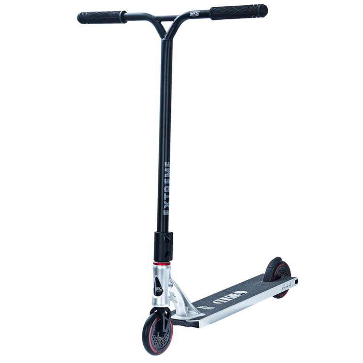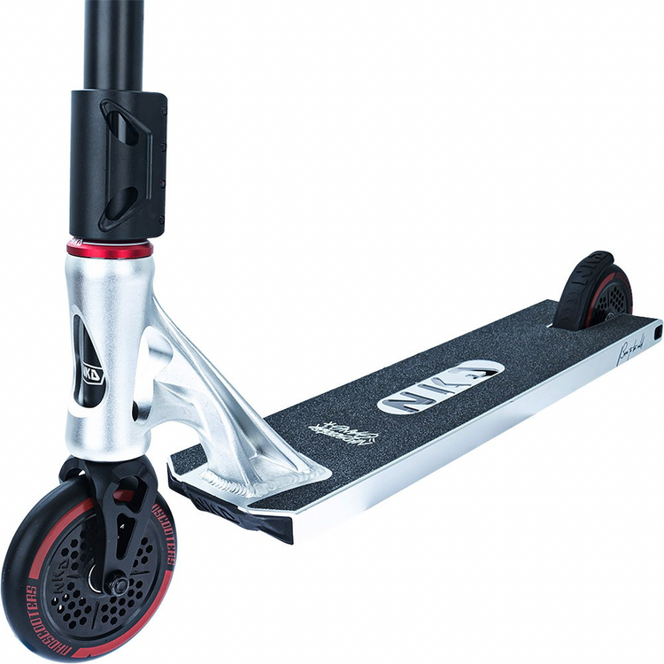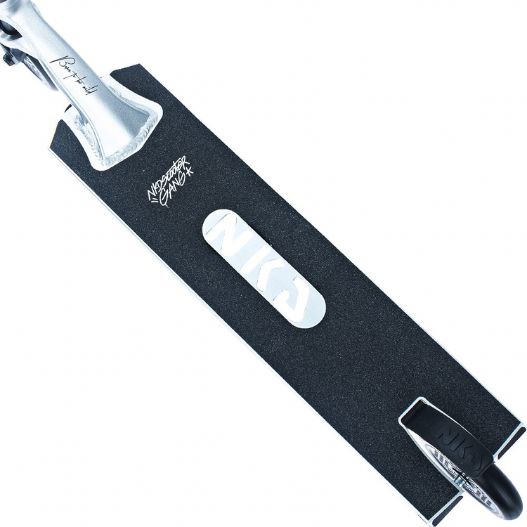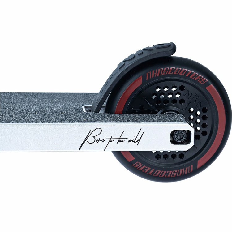NKD Extreme utilizează o tehnică specială de schelet pentru a reduce greutatea componentelor individuale. Datorită procesării speciale a modelelor de piese 3D pregătite pe mașini CNC, piesele de scuter, cum ar fi puntea, furca, clema sau roțile, sunt realizate prin tăierea unei singure piese, fără a fi nevoie de sudură. Prin urmare, materialul în exces calculat în prealabil este eliminat, iar rezistența maximă a componentelor este menținută, reducându-se în același timp greutatea. În plus, decupajele scheletului dau scuterului un caracter și un design original. În plus, NKD Extreme utilizează o platformă de dimensiuni mai mari decât modelele de scutere de performanță de bază. Acesta crește confortul călătoriei și vă permite să efectuați trucuri pe cele mai mari obstacole. Cu roțile de 120 mm, puteți atinge viteze mai mari pe acest scuter și puteți efectua trucuri mai complexe cu încredere. Datorită dimensiunii lor, acestea vor permite, de asemenea, utilizarea NKD Extreme pentru condusul zilnic. Accesul confortabil la skatepark nu va mai fi o problemă pentru tine!