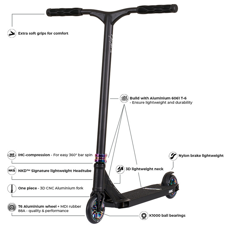 Dacă sunteți în căutarea unui scuter skatepark foarte ușor, echipat cu componente de înaltă calitate și disponibil la un preț senzațional, atunci NKD Stunt Park este alegerea perfectă pentru dvs!