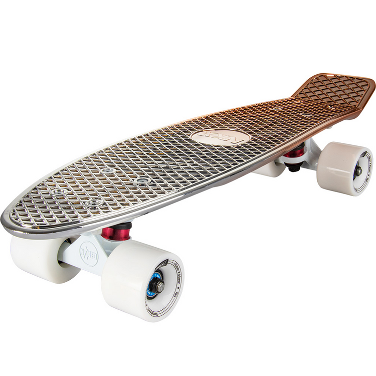 Fiszka este un reprezentant solid al genului său de plăci pentru plimbări zilnice sau deplasări urbane într-o versiune miniaturizată. Adesea, mărcile care produc ochiuri de pește se bazează pe un design care a fost testat timp de ani de zile, fără a adăuga un conținut distinctiv modelelor lor. NKX nu este una dintre aceste mărci. modelul 22" este disponibil în patru scheme de vopsire diferite, atrăgătoare. Alege vopseaua preferată dintre elegantele "Black", "Black-Gold", "Metallic-SIlver" și senina "Glow-Blue" și pornește să cucerești orașul cu stil cu un 22" de la NKX!