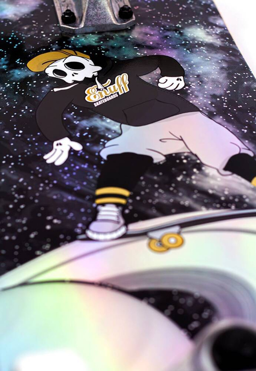 Skateboard-ul Enuff din gama Skully Hologram are grafică din epoca spațială pe o folie holografică, oferindu-i un aspect izbitor și distinctiv care va atrage cu siguranță atenția.