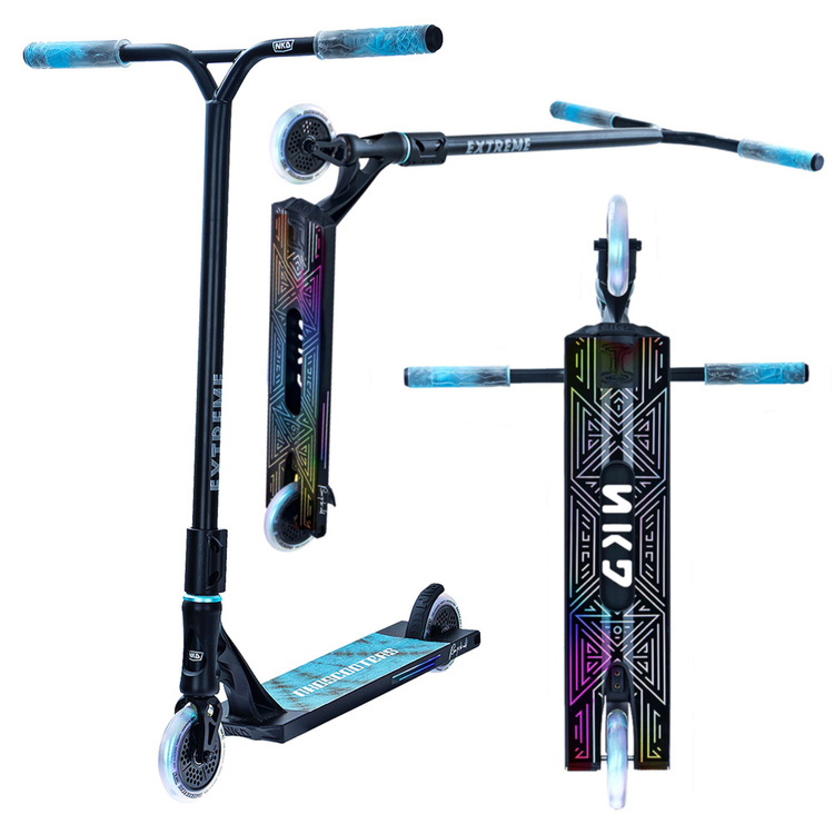 NKD Extreme este scuterul de înaltă performanță din gama NKD! Acest scuter este proiectat pentru tineri și adulți cu o înălțime de aprox. 130 cm în sus. Dacă sunteți un rider începător sau avansat și aveți nevoie de un scuter performant pentru o persoană înaltă, atunci acesta este cel pentru dvs. NKD Extreme este o piesă de echipament demnă de atenție datorită celei mai înalte calități a materialelor și manoperei și a noilor tehnologii utilizate pentru a crește durabilitatea acestui scuter. Extreme este scuterul ideal pentru sesiuni grele la skatepark și trucuri din ce în ce mai avansate!