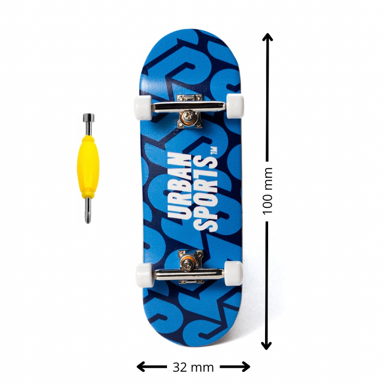 • Placa completă pentru degete Urban Sports, un mini skateboard profesional pentru efectuarea trucurilor cu degetele. Punte și camioane cu lățimea de 32 mm, roți cu rulmenți și inginerie de precizie, adică echipamente de înaltă calitate la un preț imbatabil