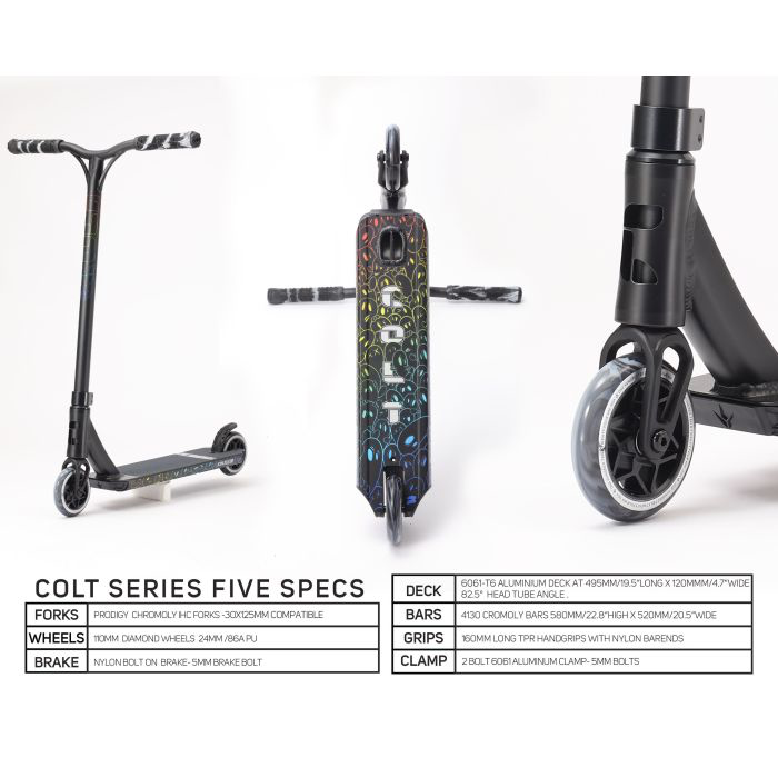 - Colt Series 5 este un model de la Blunt care a fost proiectat folosind componente de înaltă calitate din renumita linie de modele Prodigy - un scuter ușor și foarte durabil pentru începători și intermediari tineri!