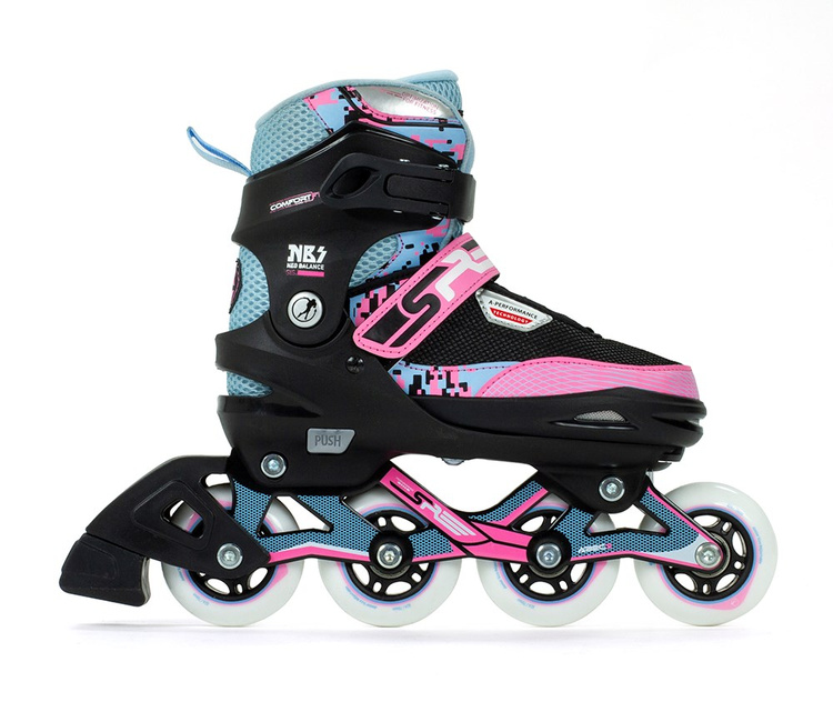 Căutați role care să vă ofere confort, stil și încrederea de a progresa? SFR Pixel este un echipament care măsoară la fiecare nivel - la propriu. Ele sunt ușoare, țin bine piciorul și arată grozav. Dar cel mai important - nu numai că se ajustează în lungime, dar și în lățime! Aceasta înseamnă că, pe măsură ce piciorul crește, nu trebuie să vă schimbați rolele în fiecare sezon. Vă redimensionați și zburați pe! În plus, un pantof moale și respirabil și o căptușeală superconfortabilă fac călăria o plăcere. Cu cât dimensiunea este mai mare, cu atât roțile sunt mai mari - ceea ce înseamnă mai multă viteză și fluiditate. Sună bine? Și ce dacă, este timpul să ne mișcăm pentru progres?