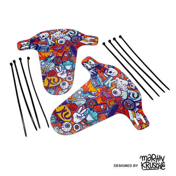 Doriți să vă faceți bicicleta să arate și mai confortabilă și, în același timp, pregătită pentru orice vreme? Aceste aripi KUbikes Comic sunt un hit! Proiectate de artistul Martin Krusche din Berlin, care cunoaște stilul ca puțini alții - acestea nu sunt apărători de noroi obișnuite, ci o operă de artă pe roți! Nu numai că arată grozav, dar sunt și un ajutor real atunci când conduceți - vă protejează de apă, noroi și murdăria drumului. Skatepark, potecă sau traseu forestier - continuați și arătați epic.