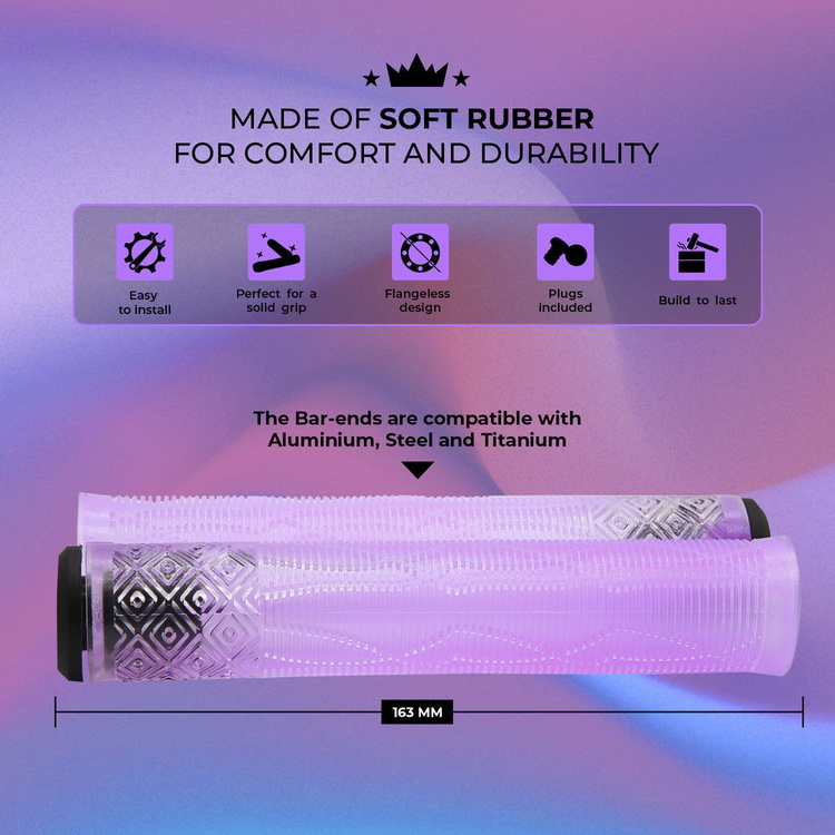 • Mânerele NKD GOAT sunt moi și confortabile, cu o lungime de 163 mm, care se prind bine chiar și atunci când se rulează dur. Se potrivesc majorității ghidonelor și sunt disponibile într-o gamă largă de culori, astfel încât să le puteți asorta cu ușurință s