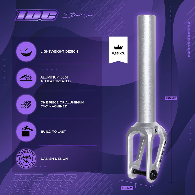 • Furca NKD IDC Stunt este o furcă de scuter de performanță dintr-o singură bucată, ușoară, frezată cu precizie, ideală atât pentru skatepark, cât și pentru stradă. Compatibil cu roți de 115 mm, oferă control și încredere la fiecare truc.