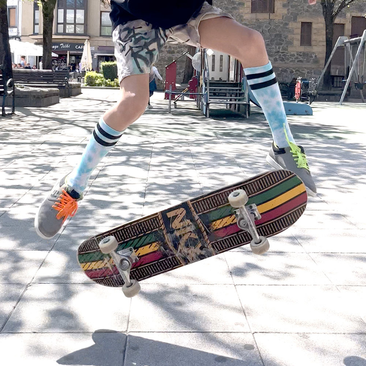 Skateboard-ul complet NKX din gama Rasta Royal a fost creat pentru cei care caută echilibrul perfect între calitate, stil și funcționalitate. Grozav atât pentru streece, skatepark și rampe, oferindu-vă control, durabilitate și confort într-unul singur. Această placă vă permite să efectuați trucuri ușor și să controlați fiecare mișcare fără probleme. Perfectă atât pentru skatepark, cât și pentru locurile urbane - fie că începi să înveți ollie sau perfecționezi un kickflip de pe scări, această placă va ține pasul cu ambițiile tale. Este o placă completă care oferă performanțe solide fără a plăti prea mult - ideală dacă sunteți în căutarea unui echipament de calitate la un preț rezonabil. Și dacă vă place să alegeți - seria Rasta Royal de la NKX oferă o gamă largă de grafică și dimensiuni, astfel încât să puteți găsi cu ușurință o placă adaptată pentru dvs.