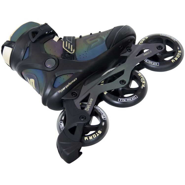 Story Space este un skate creat pentru sportivii urbani care nu fac compromisuri între calitate și stil. Designul cu trei roți și roțile puternice de 110 mm permit rularea dinamică atât pe trasee de asfalt, cât și pe skatepark-uri. Fie că vă antrenați sau doriți doar să vă deplasați rapid și elegant prin oraș, aceste role vor ține pasul cu ritmul dumneavoastră.partea superioară înaltă, interiorul respirabil și șina robustă din aluminiu oferă nu numai confort și stabilitate, ci și ușurința necesară pentru viteze mai mari. Combinația de soluții tehnice și design modern face din fiecare călătorie un spectacol.