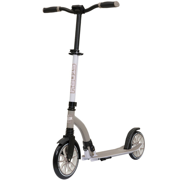 • Story Big Wheel este un scuter de oraș ușor, pliabil, cu roți mari de 230 și 200 mm și ghidon reglabil - ideal pentru traseele urbane zilnice. Suspensia, cadrul din aluminiu și mânerele confortabile fac călătoria o plăcere.