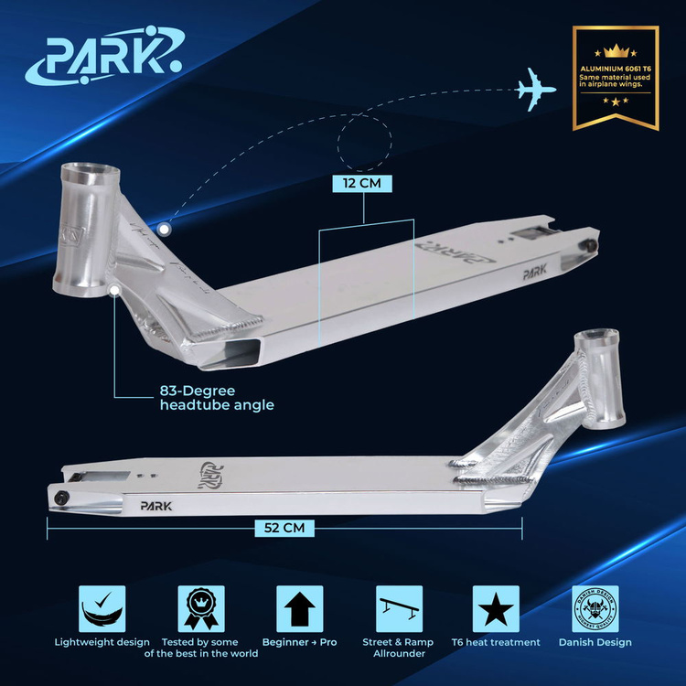 • NKD Park Deck este o platformă ușoară și robustă fabricată din aluminiu ușor și rezistent, care garantează stabilitate și confort în timpul pedalării. Forma sa inteligentă și plăcile concave asigură un control excelent al scuterului în timpul trucurilor.