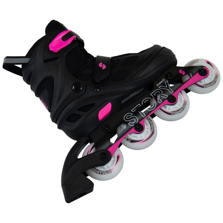 Patinele cu role reglabile Story Midnight sunt alegerea perfectă pentru cei care tratează activitatea ca o parte naturală a vieții de zi cu zi. Combinația de design modern, confort și durabilitate o face o piesă de echipament care este la fel de potrivită pentru rutele urbane și plimbările de familie. Datorită ajustabilității lor, acestea se vor potrivi picioarelor în creștere și, prin urmare, sunt potrivite atât pentru copii, cât și pentru adulți, fiind capabile să dureze mult timp. Este un skate care nu numai că oferă o plimbare lină și stabilă, dar arată și grozav - iar în versiunea cu roți strălucitoare, acestea adaugă un efect suplimentar care accentuează stilul de plimbare.