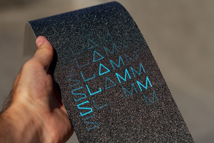 Griptape de la Slamm este un șmirghel de înaltă calitate cu o suprafață aspră, care vine în foi de 127 mm (5") lățime și 558 mm (22") lungime
