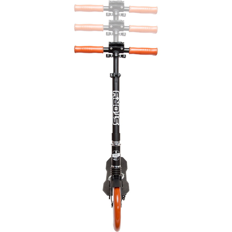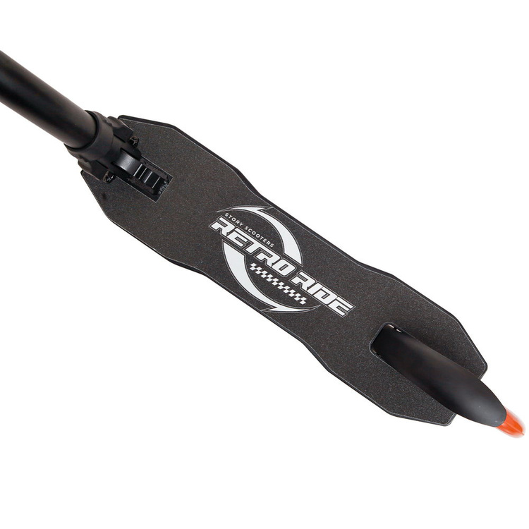 Story Retro Ride este fabricat din materiale de înaltă calitate. Datorită roții sale din față foarte mari, se rostogolește aproape perfect peste pietricele sau alte denivelări de pe drum. Materialul PU superb al roților, precum și talia lată și suspensia frontală, asigură o deplasare moale și confortabilă pe străzile orașului. Acest lucru vă va duce de la punctul A la punctul B ușor și rapid. Dacă mergeți prea repede, puteți folosi întotdeauna frâna elastică situată deasupra roții din spate.