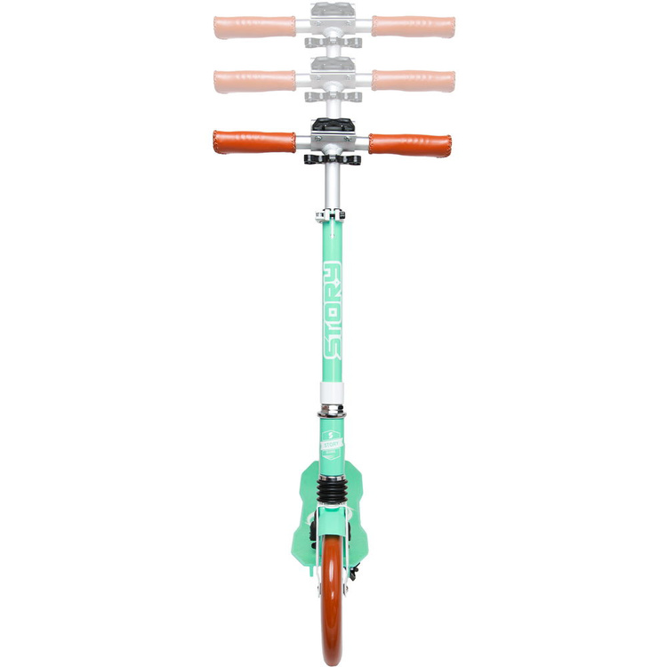 O nouă caracteristică elegantă a scuterului Story Retro Ride sunt mânerele, realizate din piele de înaltă calitate. Acestea oferă o aderență mult mai bună și mai confortabilă în timpul tuturor călătoriilor. În plus, scuterul este ușor pentru dimensiunea sa confortabilă și poate fi pliat ușor și rapid, astfel încât să îl puteți lua cu dvs. cu ușurință în autobuz, tren sau oriunde doriți să îl luați cu dvs. Scuterul are, de asemenea, un picior lateral pliabil, astfel încât să nu mai fie nevoie să îl sprijiniți de un perete sau de un copac sub magazin atunci când mergeți pentru o călătorie rapidă la cumpărături. Dacă sunteți în căutarea unui scuter elegant, de înaltă calitate, pentru transportul prin oraș, atunci Story Retro Ride este pentru dumneavoastră!