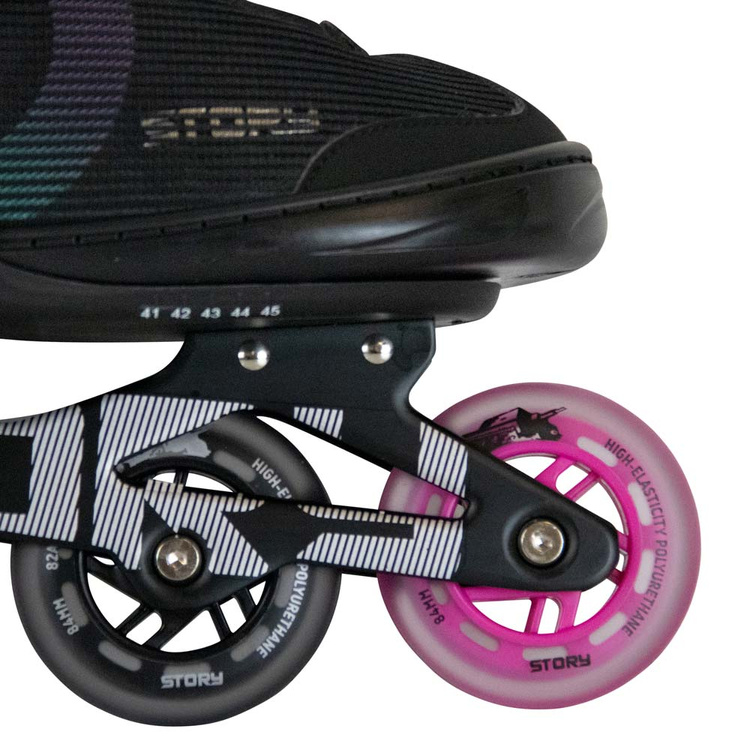 Story Motion este o patină cu rotile reglabilă creată pentru cei care consideră mișcarea ca făcând parte din stilul lor de viață urban. Datorită gamei largi de ajustări de mărime, toată lumea va găsi un model care să i se potrivească - de la copii la adulți, indiferent de sex. Este o investiție pentru anii următori, deoarece o patină poate crește odată cu tine sau cu copilul tău. Construcția robustă, detaliile rafinate și designul modern fac din aceasta o piesă de echipament care nu numai că arată grozav, dar permite și plimbări line, stabile și încrezătoare. Astfel, alegeți calitatea și ergonomia care țin pasul cu ritmul dvs. de viață.