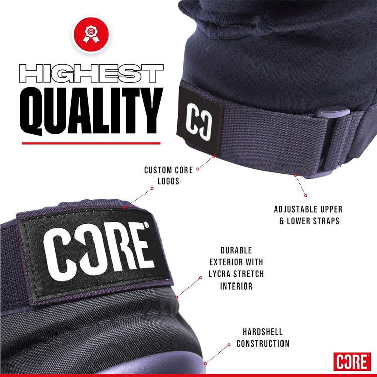 CORE Street Skate Knee Pads sunt protecții create pentru riding intens în skatepark și pe spoturi street, unde orice greșeală poate însemna o pauză forțată. Carcasa dură combinată cu spuma anatomică EVA cu grosimea de 12,7 mm protejează eficient genunchii, adaptându-se în același timp formei acestora. Este o soluție pentru skateri și rideri de orice nivel – atât pentru cei experimentați, care zboară pe cele mai înalte rampe și dau grind pe railuri masive, cât și pentru cei care bifează mii de căzături în timp ce învață primele trick-uri. Confortul, fixarea sigură și protecția reală îți permit să te concentrezi pe progres și pe următoarele trick-uri, nu pe riscul de accidentare.