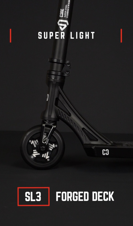 CORE SL3 Complete Stunt Scooter este o trotinetă freestyle creată ca un setup profesional de skatepark, proiectat de la zero de specialiștii CORE și testat intensiv de CORE Pro Team. Modelul SL3 dezvoltă tot ce a făcut din versiunea anterioară SL2 o legendă a skateparkurilor, ridicând ștacheta și mai sus în ceea ce privește greutatea redusă, controlul și calitatea execuției. Fiecare element a fost proiectat cu accent pe reducerea maximă a greutății fără a compromite rezistența, permițând concentrarea pe progres și riding curat. Modelul SL3 este livrat în proporție de aproximativ 90% asamblat – este suficient să montezi ghidonul, să strângi câteva șuruburi și trotineta este gata de utilizare.