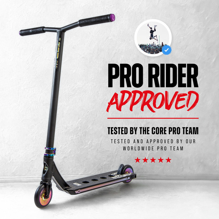 • CORE CL1 este o trotinetă foarte ușoară, rafinată pentru rideri exigenți care așteaptă fluiditate, calitate și control. Design profesional, sistem de compresie IHC, geometrie stabilă și rulmenți ABEC-9 fac din acest model o alegere ideală pentru progres.